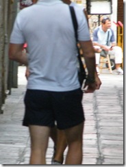 Booty shorts. I understand that it is a cultural thing that Europeans where Speedos at the beach, but there is no reason for a gentleman’s ball to make an appearance when sitting down at a cafe or walking down the street.